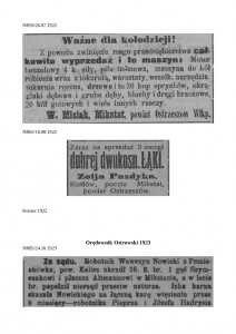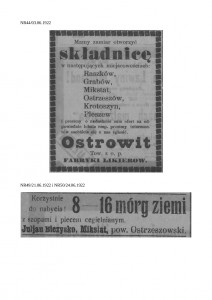Orędownik Ostrowski roczniki 1922 – 1925 wybrane informacje związane z Mikstatem.